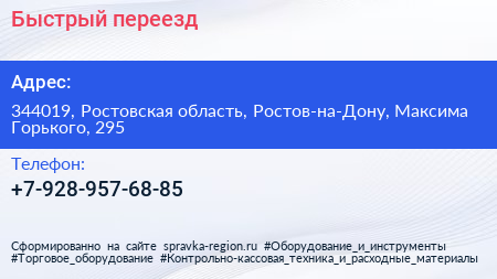 Быстрый переезд по адресу 344019, Ростовская область, Ростов-на-Дону, Максима Горького, 295 в дальнейшем Организация, размещена в следующих категориях: