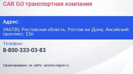 CAR-GO!, транспортная компания по адресу 346720, Ростовская область, Ростов-на-Дону, Аксайский проспект, 13п в дальнейшем Организация, размещена в следующих категориях: