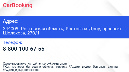 CarBooking по адресу 344009, Ростовская область, Ростов-на-Дону, проспект Шолохова, 270/1 в дальнейшем Организация, размещена в следующих категориях: