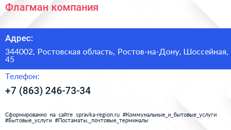 Флагман, компания по адресу 344002, Ростовская область, Ростов-на-Дону, Шоссейная, 45 в дальнейшем Организация, размещена в следующих категориях: