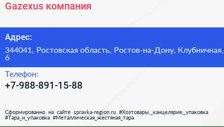 Gazexus, компания по адресу 344041, Ростовская область, Ростов-на-Дону, Клубничная, 6 в дальнейшем Организация, размещена в следующих категориях: