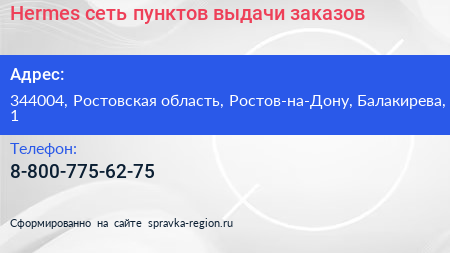 Hermes, сеть пунктов выдачи заказов по адресу 344004, Ростовская область, Ростов-на-Дону, Балакирева, 1 в дальнейшем Организация, размещена в следующих категориях: