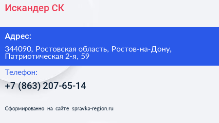 Искандер-СК по адресу 344090, Ростовская область, Ростов-на-Дону, Патриотическая 2-я, 59 в дальнейшем Организация, размещена в следующих категориях: