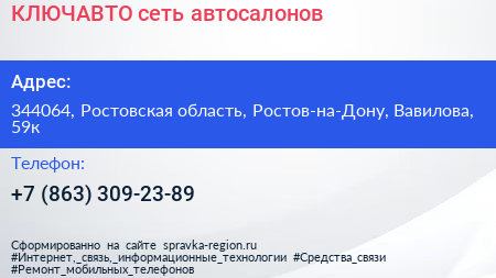 КЛЮЧАВТО, сеть автосалонов по адресу 344064, Ростовская область, Ростов-на-Дону, Вавилова, 59к в дальнейшем Организация, размещена в следующих категориях: