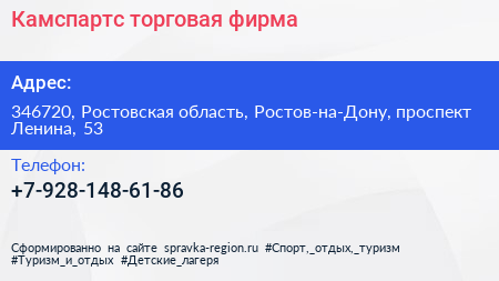 Камспартс, торговая фирма по адресу 346720, Ростовская область, Ростов-на-Дону, проспект Ленина, 53 в дальнейшем Организация, размещена в следующих категориях: