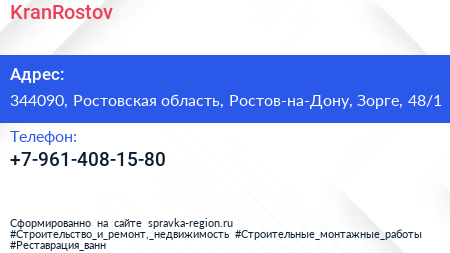 KranRostov по адресу 344090, Ростовская область, Ростов-на-Дону, Зорге, 48/1 в дальнейшем Организация, размещена в следующих категориях:
