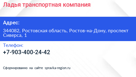 Ладья, транспортная компания по адресу 344082, Ростовская область, Ростов-на-Дону, проспект Сиверса, 1 в дальнейшем Организация, размещена в следующих категориях: