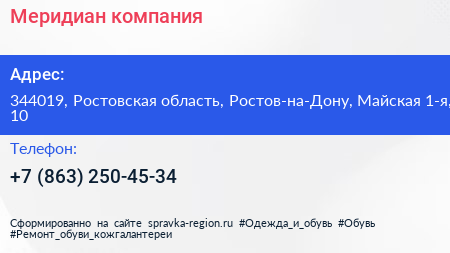 Меридиан, компания по адресу 344019, Ростовская область, Ростов-на-Дону, Майская 1-я, 10 в дальнейшем Организация, размещена в следующих категориях: