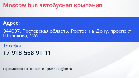 Moscow bus, автобусная компания по адресу 344037, Ростовская область, Ростов-на-Дону, проспект Шолохова, 126 в дальнейшем Организация, размещена в следующих категориях: