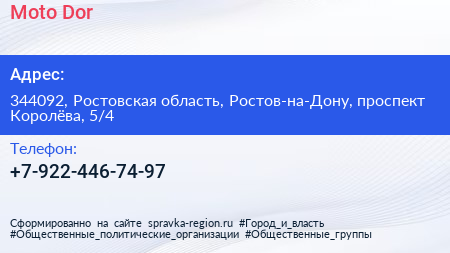 Moto-Dor по адресу 344092, Ростовская область, Ростов-на-Дону, проспект Королёва, 5/4 в дальнейшем Организация, размещена в следующих категориях: