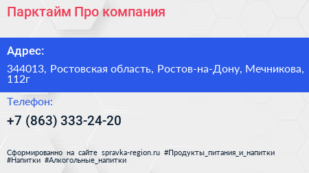 Парктайм.Про, компания по адресу 344013, Ростовская область, Ростов-на-Дону, Мечникова, 112г в дальнейшем Организация, размещена в следующих категориях: