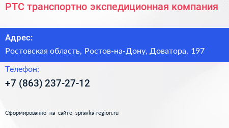 РТС, транспортно-экспедиционная компания по адресу Ростовская область, Ростов-на-Дону, Доватора, 197 в дальнейшем Организация, размещена в следующих категориях: