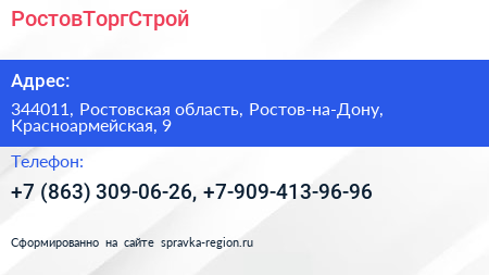 РостовТоргСтрой по адресу 344011, Ростовская область, Ростов-на-Дону, Красноармейская, 9 в дальнейшем Организация, размещена в следующих категориях: