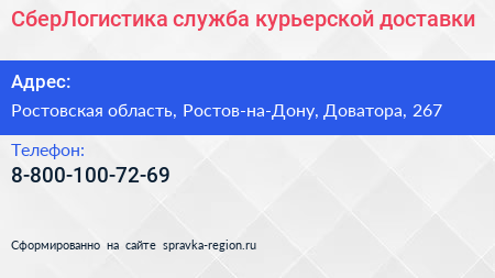 СберЛогистика, служба курьерской доставки по адресу Ростовская область, Ростов-на-Дону, Доватора, 267 в дальнейшем Организация, размещена в следующих категориях: