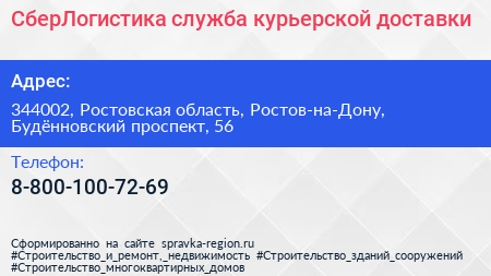СберЛогистика, служба курьерской доставки по адресу 344002, Ростовская область, Ростов-на-Дону, Будённовский проспект, 56 в дальнейшем Организация, размещена в следующих категориях: