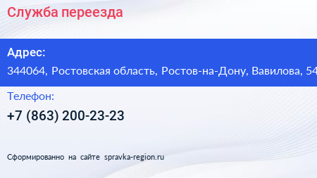 Служба переезда по адресу 344064, Ростовская область, Ростов-на-Дону, Вавилова, 54 в дальнейшем Организация, размещена в следующих категориях: