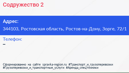 Содружество-2 по адресу 344103, Ростовская область, Ростов-на-Дону, Зорге, 72/1 в дальнейшем Организация, размещена в следующих категориях:
