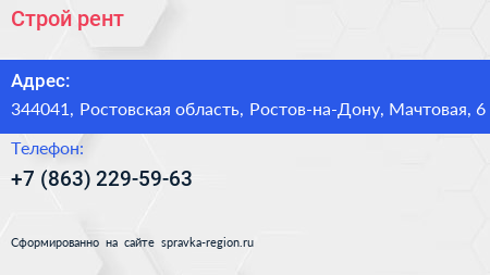 Строй-рент по адресу 344041, Ростовская область, Ростов-на-Дону, Мачтовая, 6 в дальнейшем Организация, размещена в следующих категориях: