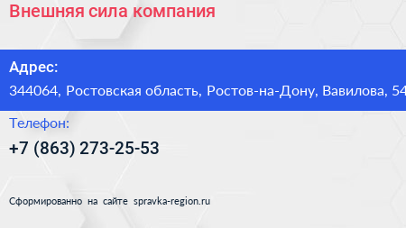 Внешняя сила, компания по адресу 344064, Ростовская область, Ростов-на-Дону, Вавилова, 54 в дальнейшем Организация, размещена в следующих категориях: