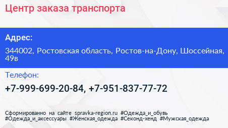 Центр заказа транспорта по адресу 344002, Ростовская область, Ростов-на-Дону, Шоссейная, 49в в дальнейшем Организация, размещена в следующих категориях: