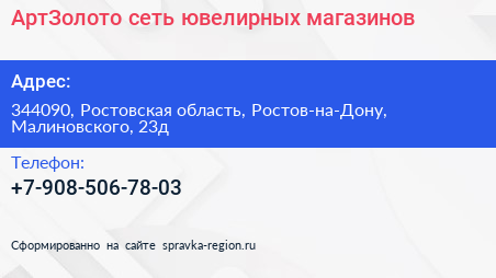 АртЗолото, сеть ювелирных магазинов по адресу 344090, Ростовская область, Ростов-на-Дону, Малиновского, 23д в дальнейшем Организация, размещена в следующих категориях: