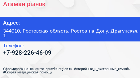 Атаман, рынок по адресу 344010, Ростовская область, Ростов-на-Дону, Драгунская, 1 в дальнейшем Организация, размещена в следующих категориях: