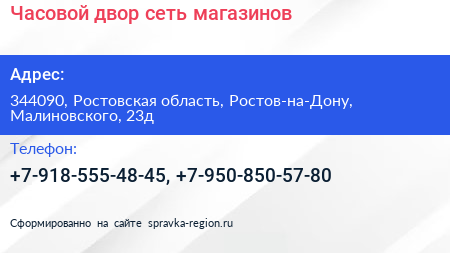 Часовой двор, сеть магазинов по адресу 344090, Ростовская область, Ростов-на-Дону, Малиновского, 23д в дальнейшем Организация, размещена в следующих категориях: