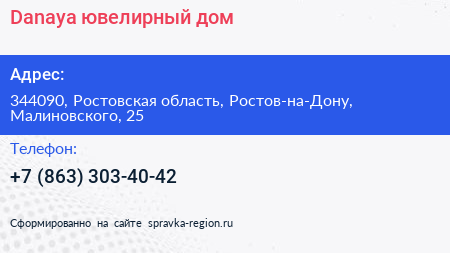 Danaya, ювелирный дом по адресу 344090, Ростовская область, Ростов-на-Дону, Малиновского, 25 в дальнейшем Организация, размещена в следующих категориях: