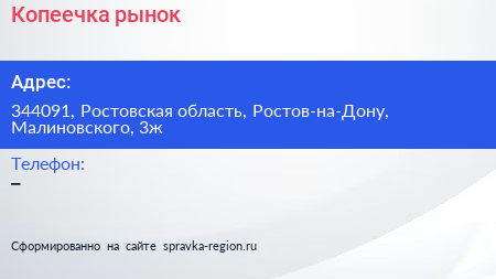 Копеечка, рынок по адресу 344091, Ростовская область, Ростов-на-Дону, Малиновского, 3ж в дальнейшем Организация, размещена в следующих категориях:
