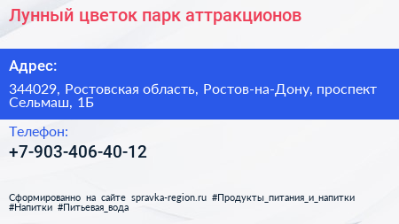 Лунный цветок, парк аттракционов по адресу 344029, Ростовская область, Ростов-на-Дону, проспект Сельмаш, 1Б в дальнейшем Организация, размещена в следующих категориях: