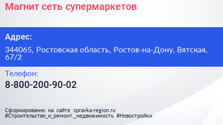 Магнит, сеть супермаркетов по адресу 344065, Ростовская область, Ростов-на-Дону, Вятская, 67/2 в дальнейшем Организация, размещена в следующих категориях: