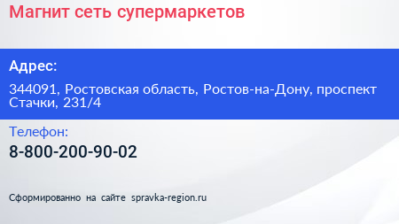 Магнит, сеть супермаркетов по адресу 344091, Ростовская область, Ростов-на-Дону, проспект Стачки, 231/4 в дальнейшем Организация, размещена в следующих категориях: