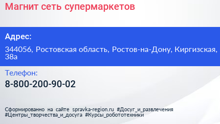 Магнит, сеть супермаркетов по адресу 344056, Ростовская область, Ростов-на-Дону, Киргизская, 38а в дальнейшем Организация, размещена в следующих категориях: