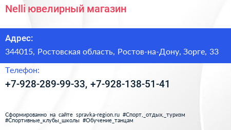 Nelli, ювелирный магазин по адресу 344015, Ростовская область, Ростов-на-Дону, Зорге, 33 в дальнейшем Организация, размещена в следующих категориях: