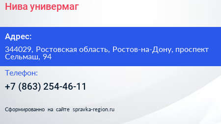 Нива, универмаг по адресу 344029, Ростовская область, Ростов-на-Дону, проспект Сельмаш, 94 в дальнейшем Организация, размещена в следующих категориях: