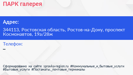 ПАРК, галерея по адресу 344113, Ростовская область, Ростов-на-Дону, проспект Космонавтов, 19а/28ж в дальнейшем Организация, размещена в следующих категориях: