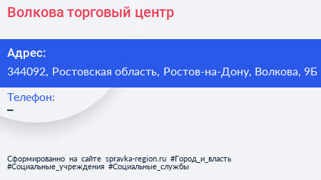 Волкова, торговый центр по адресу 344092, Ростовская область, Ростов-на-Дону, Волкова, 9Б в дальнейшем Организация, размещена в следующих категориях: