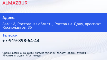 ALMAZBUR по адресу 344113, Ростовская область, Ростов-на-Дону, проспект Космонавтов, 35 в дальнейшем Организация, размещена в следующих категориях: