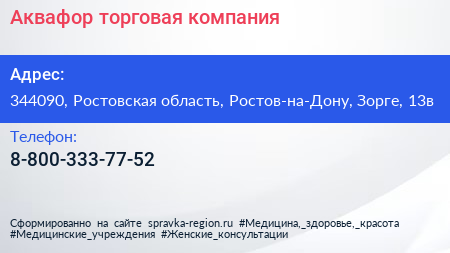 Аквафор, торговая компания по адресу 344090, Ростовская область, Ростов-на-Дону, Зорге, 13в в дальнейшем Организация, размещена в следующих категориях: