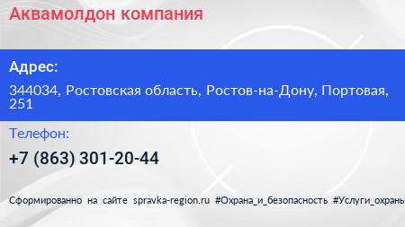 Аквамолдон, компания по адресу 344034, Ростовская область, Ростов-на-Дону, Портовая, 251 в дальнейшем Организация, размещена в следующих категориях: