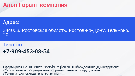 Альп Гарант, компания по адресу 344003, Ростовская область, Ростов-на-Дону, Тельмана, 20 в дальнейшем Организация, размещена в следующих категориях: