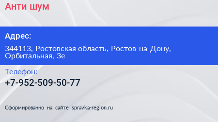 Анти-шум по адресу 344113, Ростовская область, Ростов-на-Дону, Орбитальная, 3е в дальнейшем Организация, размещена в следующих категориях: