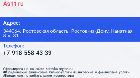 As11.ru по адресу 344064, Ростовская область, Ростов-на-Дону, Канатная 8-я, 31 в дальнейшем Организация, размещена в следующих категориях: