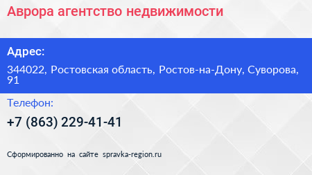 Аврора, агентство недвижимости по адресу 344022, Ростовская область, Ростов-на-Дону, Суворова, 91 в дальнейшем Организация, размещена в следующих категориях: