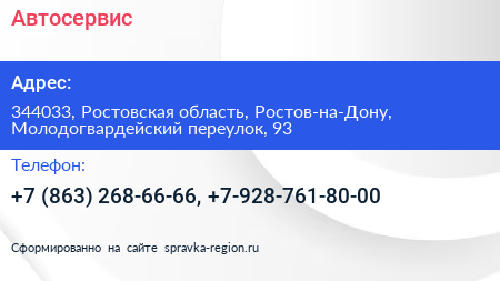 Автосервис по адресу 344033, Ростовская область, Ростов-на-Дону, Молодогвардейский переулок, 93 в дальнейшем Организация, размещена в следующих категориях: