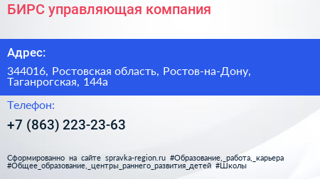 БИРС, управляющая компания по адресу 344016, Ростовская область, Ростов-на-Дону, Таганрогская, 144а в дальнейшем Организация, размещена в следующих категориях: