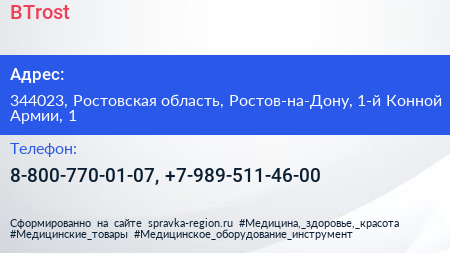 BTrost по адресу 344023, Ростовская область, Ростов-на-Дону, 1-й Конной Армии, 1 в дальнейшем Организация, размещена в следующих категориях: