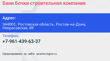 Бани Бочки, строительная компания по адресу 344001, Ростовская область, Ростов-на-Дону, Некрасовская, 89 в дальнейшем Организация, размещена в следующих категориях: