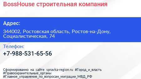 BossHouse, строительная компания по адресу 344002, Ростовская область, Ростов-на-Дону, Социалистическая, 74 в дальнейшем Организация, размещена в следующих категориях: