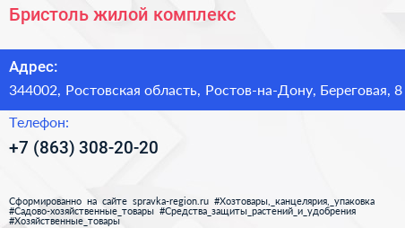 Бристоль, жилой комплекс по адресу 344002, Ростовская область, Ростов-на-Дону, Береговая, 8 в дальнейшем Организация, размещена в следующих категориях: